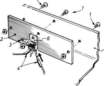 evita, ai meno esperti, la composizione dello stampato. Fig. 5 - Particolare realizzativo del sistema di raffreddamento adottato nella composizione circuitale del secondo tipo di interruttore elettronico descritto nel testo. Gli elementi qui disegnati sono: viti di nylon (1), piastra di alluminio (2), linguetta di contatto con il secondo anodo A2 (3), spezzoni di tubetto sterlingato (4), contenitore di plastica (5), aletta metallica del TRIAC (6). Tutte