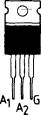figura 5 Fig. 6 - Esatta distribuzione degli elettrodi di primo anodo (A1), di secondo anodo (A2) e di gate (G) nel TRIAC modello SC141D consigliato nel testo per la realizzazione degli interruttori elettronici descritti. Ricordiamo che i quattro diodi al silicio D1 - D2 - D3 - D4, che sono tutti di tipo 1N4007, debbono essere inseriti nel circuito tenendo conto delle loro esatte polarità di catodo e di anodo. Tuttavia, per non commettere errori, basta affidarsi allo schema pratico di figura 4, nel quale il catodo di questi componenti è segnalato tramite un anellino, che in pratica rimane pure impresso, in prossimità dell'elettrodo ora citato, in ogni diodo polarizzato. Questo problema non sussiste invece nel DIAC, che è un componente privo di polarizzazione e che può quindi essere comunque inserito nel circuito. |